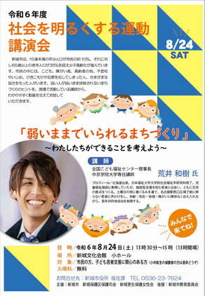 令和6年度社会を明るくする運動講演会「弱いままでいられるまちづくり」講師(新城市文化会館小ホール 2024年8月24日)200名参加